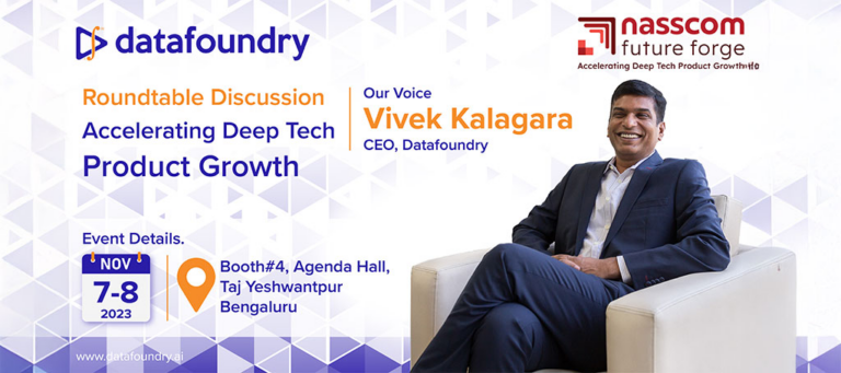 Datafoundry extends a warm invitation to join us at the NASSCOM Future Forge 2023 – Strategy Meeting, where our CEO, Vivek Kalagara, will deliver his insights on Accelerating Deep Tech Product Growth in India.